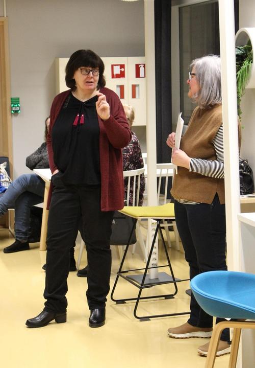 Syksyllä-23 aloittavan Naispoppoon esittelytilaisuudessa naistenpäivänä 8.3. oli parikymmentä kiinnostunutta naista paikalla. Kuvat: Riina Laukkanen