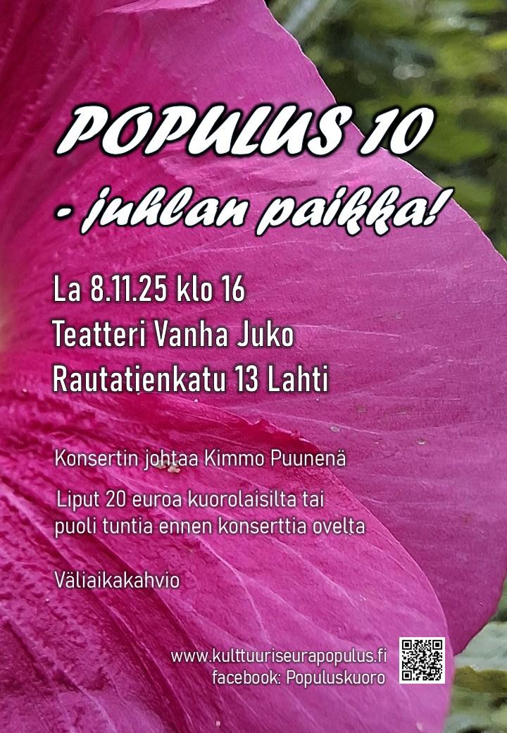 Ota yhteyttä Marjaan (044 0252000), Kimmoon (040 5900820), Maarittiin(044 9787984) tai sähköpostitse: kulttuuriseura.populus@gmail.com.