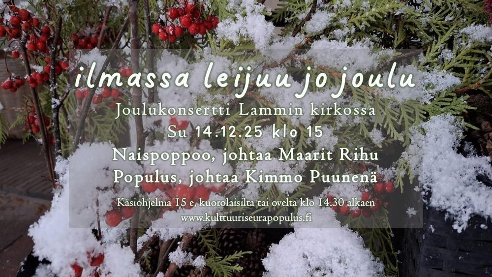 Populus-kuoro Joulukylässä 17.12 ja Naispoppoo 18.12.2024